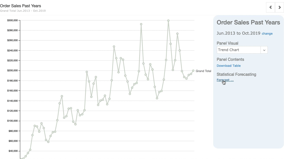 Planning future business is difficult and can require some guess work. Ri360 eliminates the guessing by using time-series statistical forecasting to predict future values.